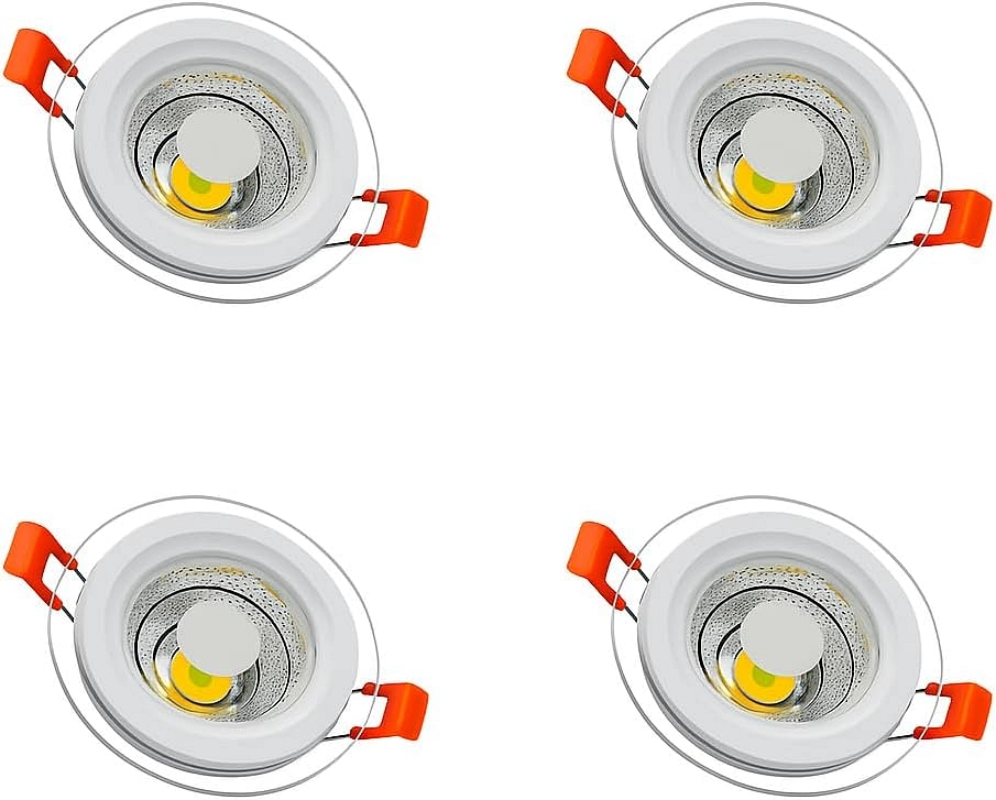 مجموعة ٤ اسبوت ليد زجاجي داخلي، ٦ واط، ٣ درجات إضاءة - أبيض ، اصفر دافي، تلجي، مع ضمان سنة