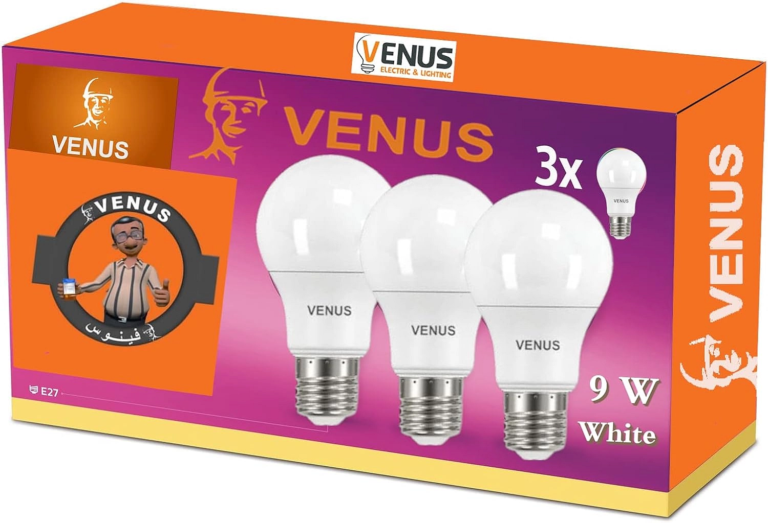 عبوة تحتوي على 3 لمبات فينوس LED بقدرة 9 وات، توفر إضاءة قوية وواضحة مع استهلاك منخفض للطاقة. تتميز اللمبة بعمر افتراضي طويل وأداء مستقر، مما يجعلها الخيار المثالي للاستخدام المنزلي أو التجاري. تعمل بتقنية LED الحديثة التي تمنحك إضاءة فورية بدون تأخير وبدون إصدار حرارة عالية.