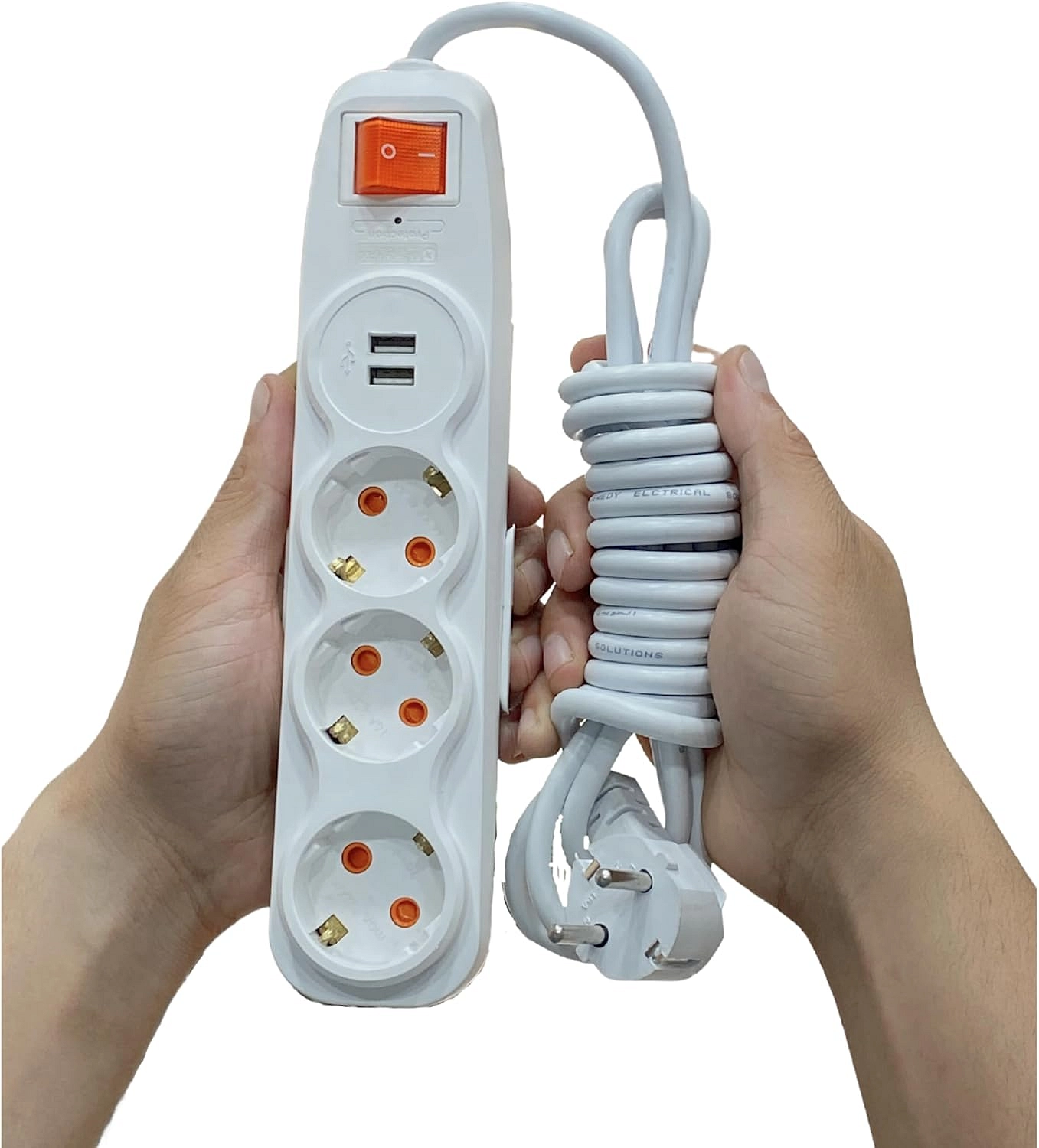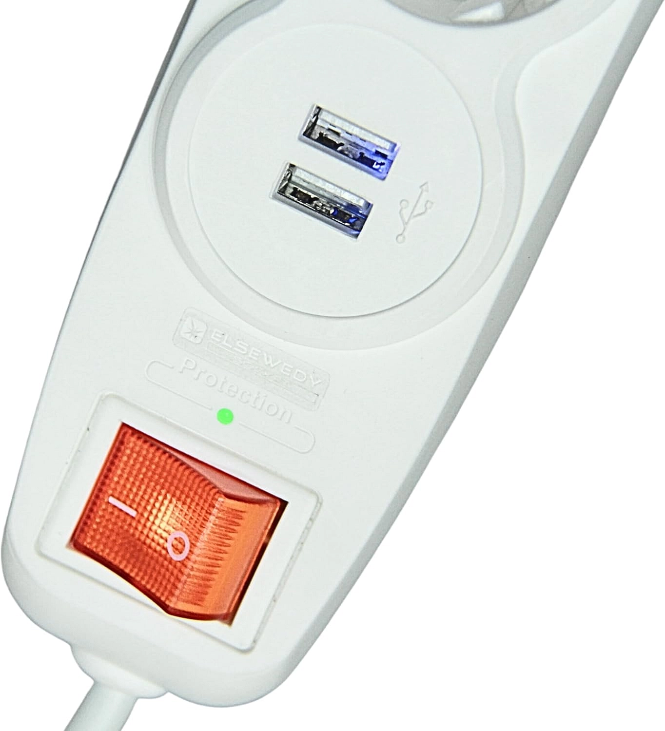 مشترك كهرباء من السويدي، 16 أمبير، بحد أقصى 3600 وات، وصلة كهربائية متعددة (3 منافذ مع 2 USB وكابل طول 3 متر)