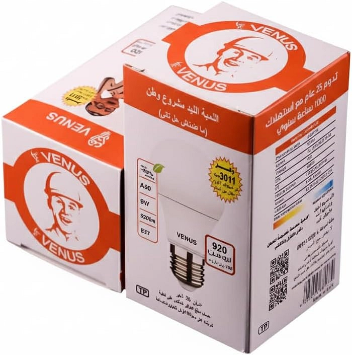 قوة الإضاءة: لمبة LED بقدرة 9 واط توفر إضاءة ساطعة تعادل 800 لومن، مثالية للاستخدام اليومي