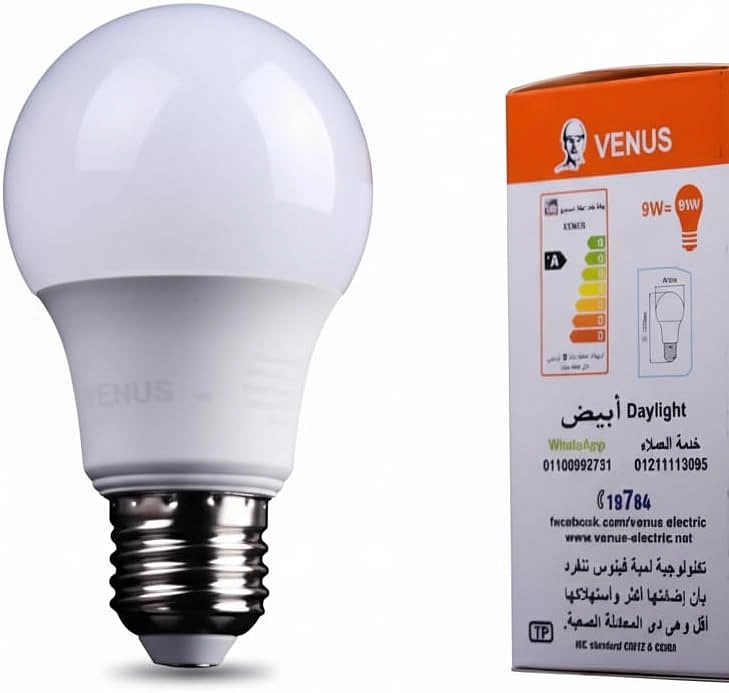 فينوس لمبة ليد، ٩ واط، ضوء نهاري أبيض ٦٥٠٠ كلفن، قاعدة E27، طقم ٥ قطع